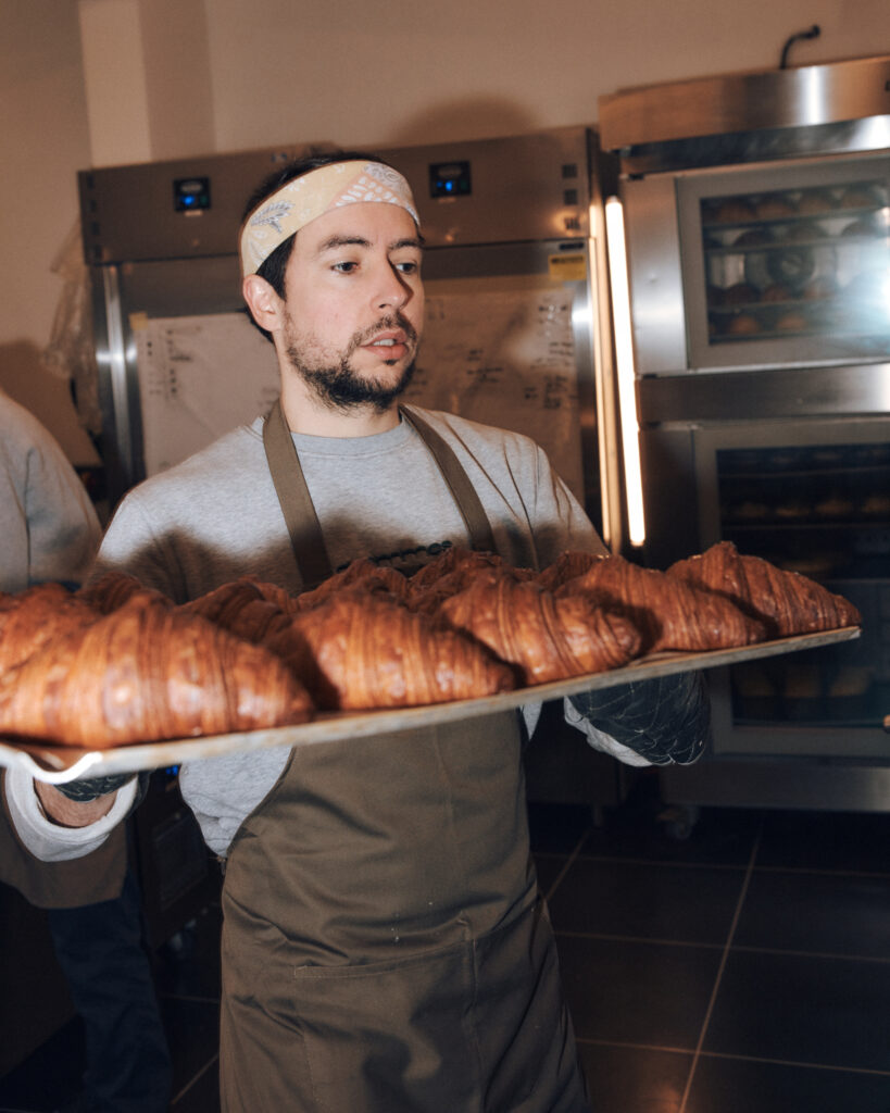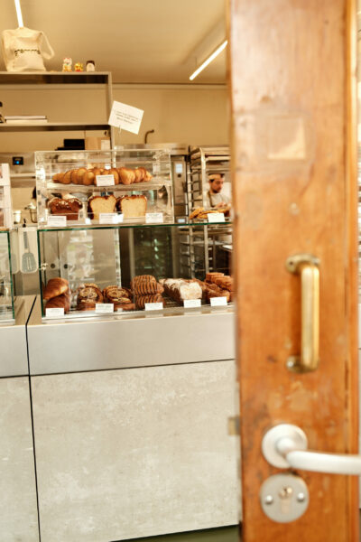 Maxime : « C’était en période COVID, avec ma compagne néerlandaise nous avions décidé de vivre ensemble à Amsterdam, dans ce quartier et … j’ai vu que ce local était vide, après avoir abrité une boulangerie. Refusant de céder leur bail à un kebab, les boulangers sortants, contents d’être remplacés par un pâtissier français, et intéressés par mon projet, m’ont beaucoup aidé pour pouvoir louer le local et y installer mon entreprise. Pourtant cela n’a pas été facile, sans prêt bancaire ; finalement le boulanger sortant a accepté que je paye le droit au bail sur dix-mois mois, ce qui m’a permis d’utiliser mes économies puis les bénéfices des ventes pour équiper le lieu petit à petit (nouvelles machines, fours, pétrin et tables de travail) et créer un cadre de travail et d’accueil de la clientèle, qui me convienne, me ressemble. »